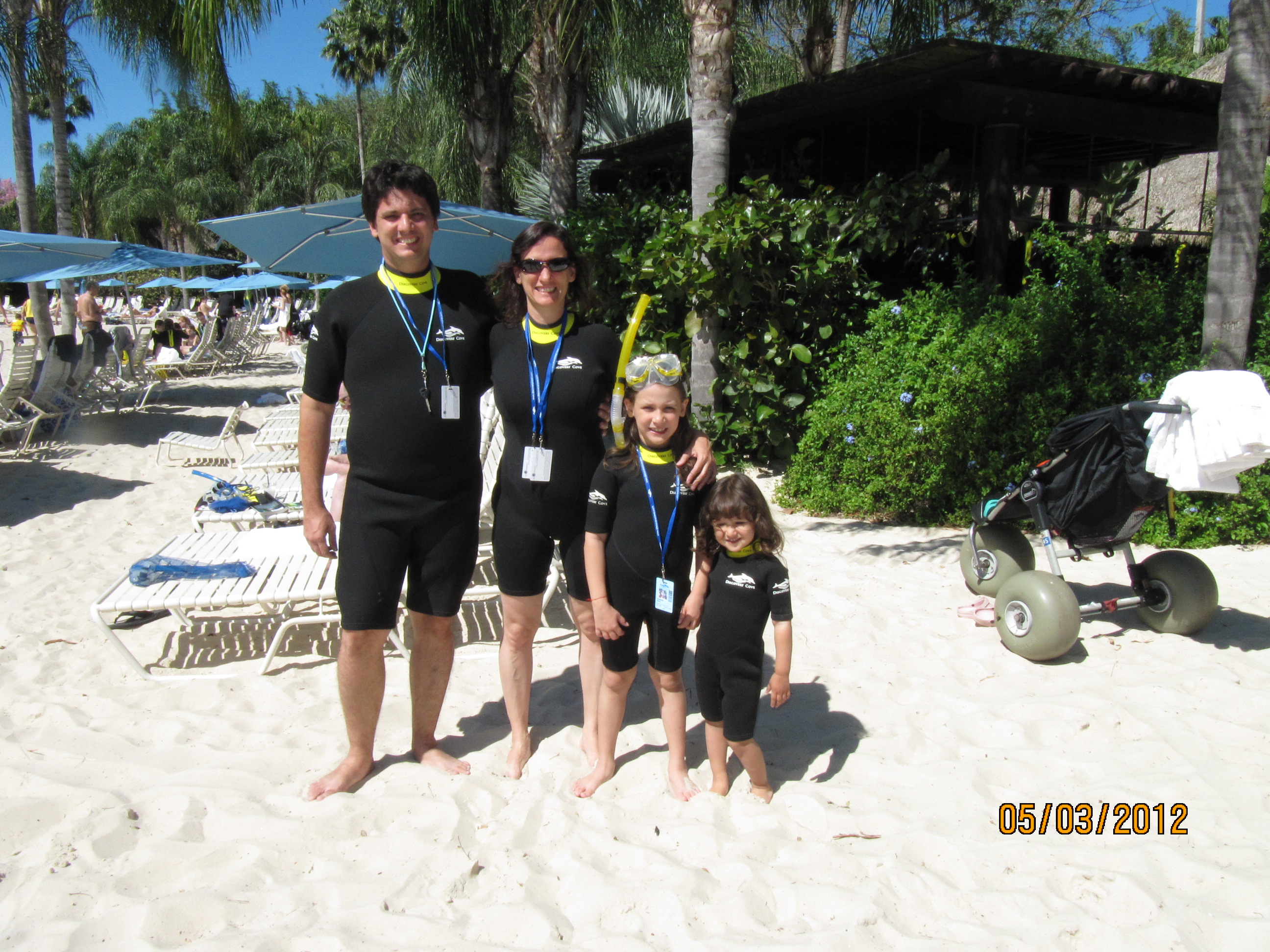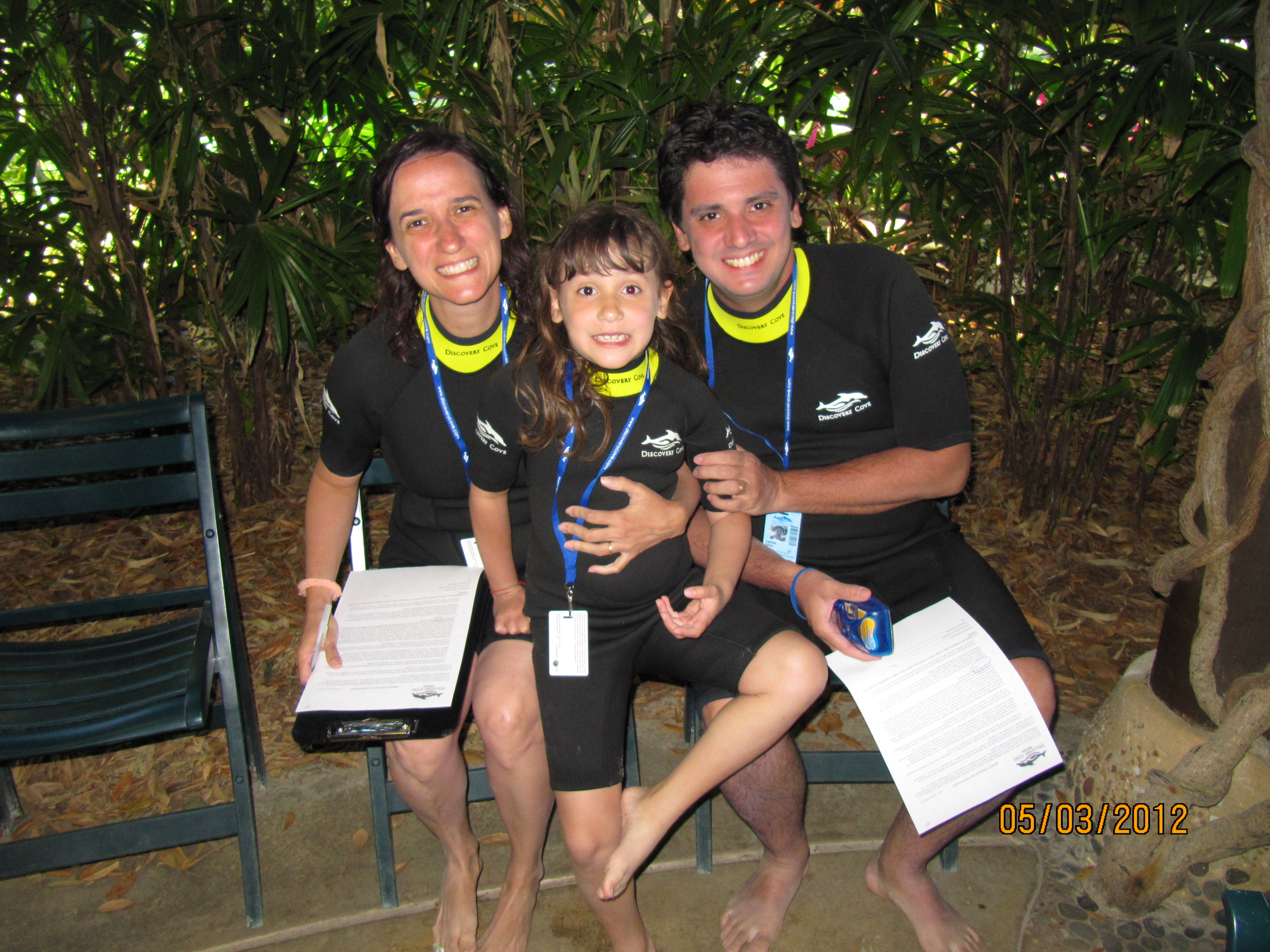 Nadamos em um lago lindo, admirando e fotografando os peixes e corais. Compramos lá uma máquina fotográfica à prova d’água. Porém, ao comprarmos, imaginamos que pudéssemos levá-la para o momento de nadar com os golfinhos, mas não é permitido levar câmeras nessa hora. Acabamos gastando todas as fotos nesse lago mesmo. Ficaram como uma boa recordação, mas talvez não tivéssemos comprado a tal câmera se soubéssemos previamente da restrição.