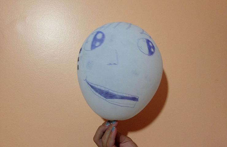 Hoje eu fiz uma atividade na aula de religião, que era para desenhar um rostinho em um balão (cada aluno desenhou o seu).